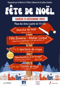 Petits et grands sont attendus nombreux le samedi 13 décembre 2025 à partir de 14 h 00 sur la place des Aires, pour une après-midi festive placée sous le signe de la féerie de Noël. Animations variées, surprises et bonne humeur rythmeront cette journée incontournable.