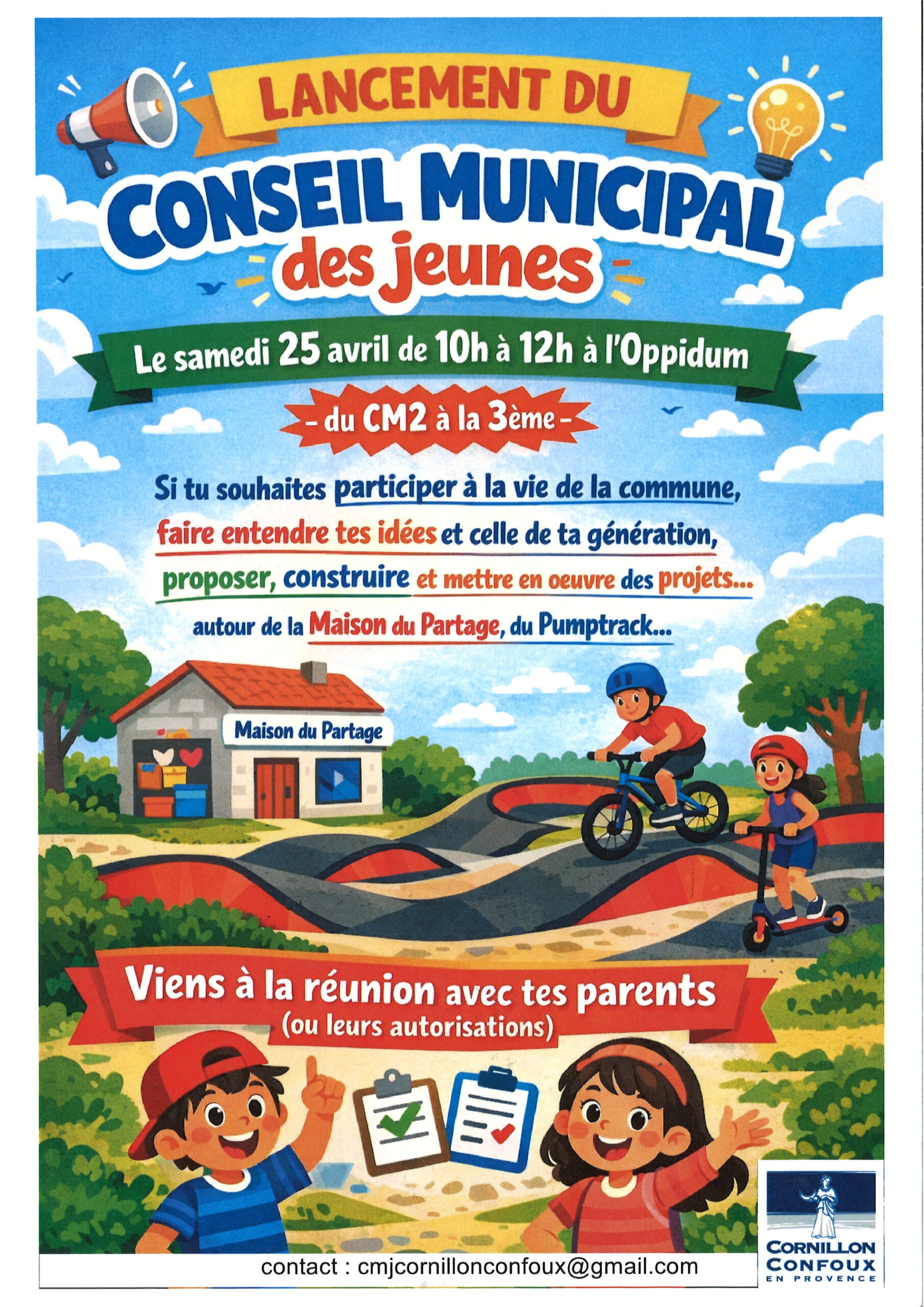Lancement CONSEIL MUNICIPAL DES JEUNES Rdv le Samedi 25 avril 2026 de 10h00 à 12h00 à L'OPPIDUM ...