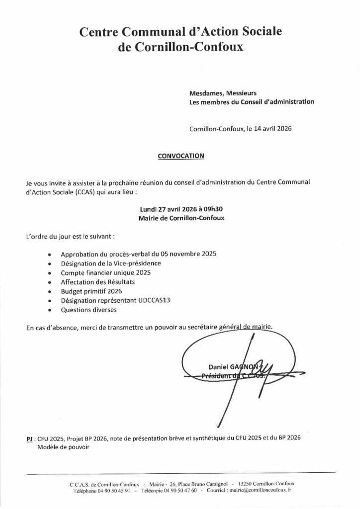 Conseil d’Administration du CCAS le 27.04.2026 – CONVOCATION
