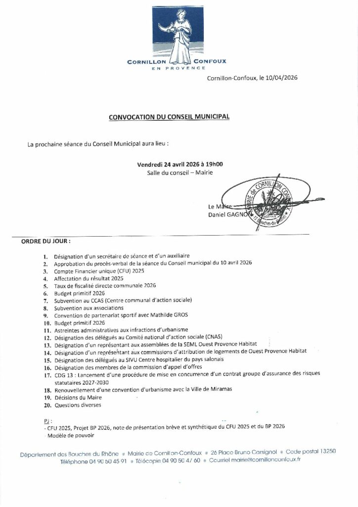Conseil Municipal du 24.04.2026 – CONVOCATION